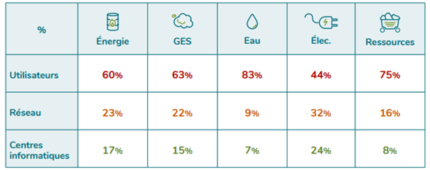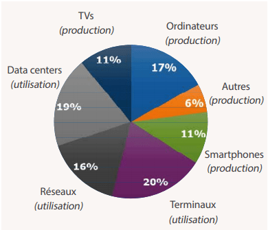 Part respective de la fabrication et de l’utilisation dans l’empreinte mondiale du numérique